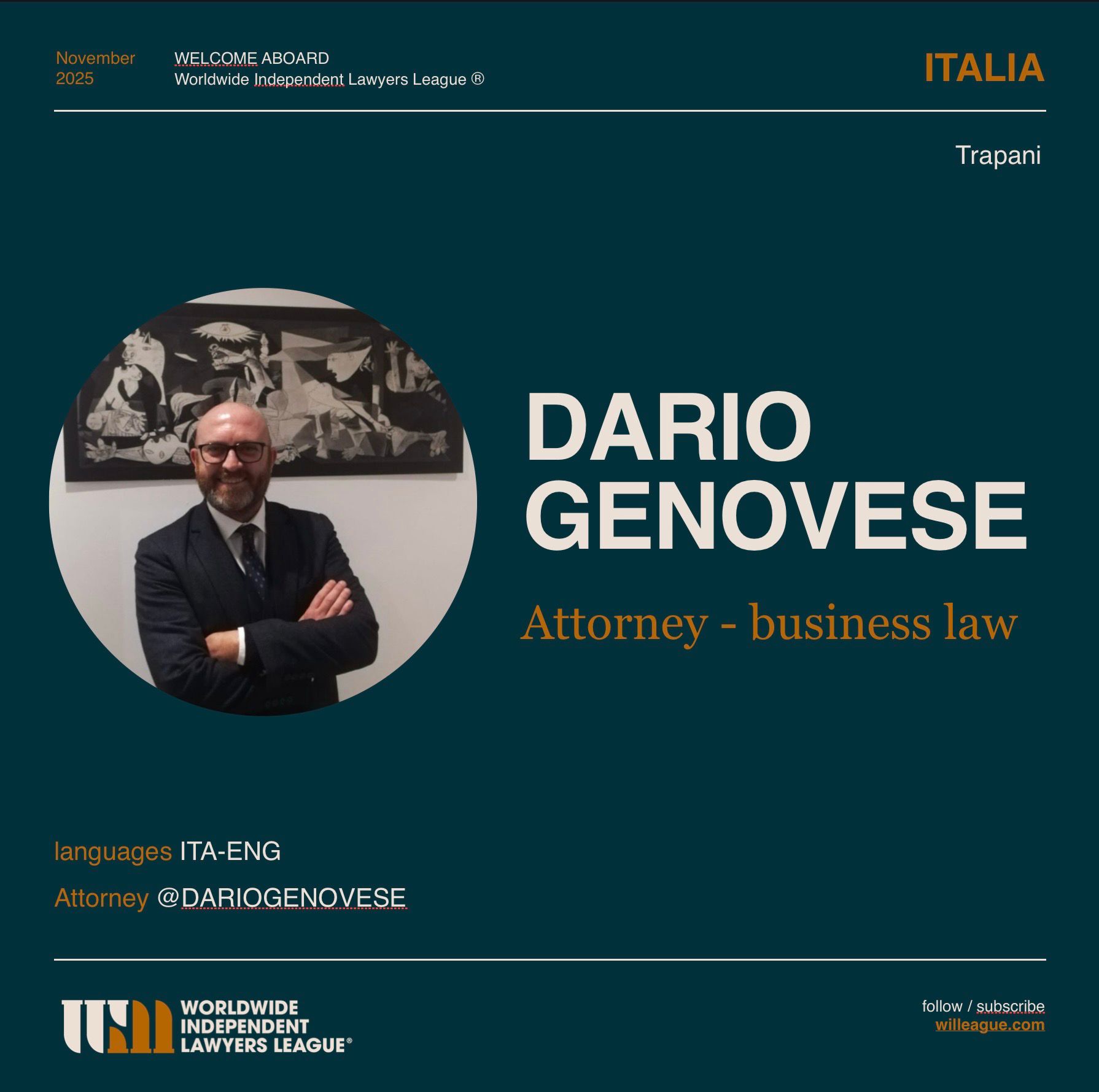 WELCOME ON BOARD ATTORNEY DARIO GENOVESE